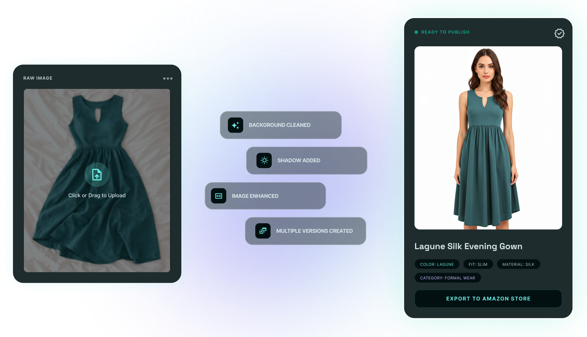 Upload an image. Get a complete, optimized listing — across every channel you sell on. Titles, attributes, lifestyle images — built for your category and priced right.